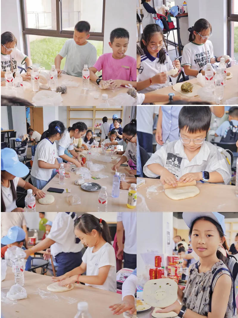 午间,同学们围在长桌旁,兴致勃勃地制作着永嘉麦饼。桌上整齐地摆放着面团和各色馅料——香气浓郁的梅干菜、咸香可口的咸菜肉丝,还有清爽的胡萝卜丝。大家揉面、包馅、擀饼,动作虽然略显生疏,却充满了欢声笑语。当一个个热腾腾、香喷喷的麦饼新鲜出炉时,每个人的脸上都洋溢着成功的喜悦和满满的成就感。