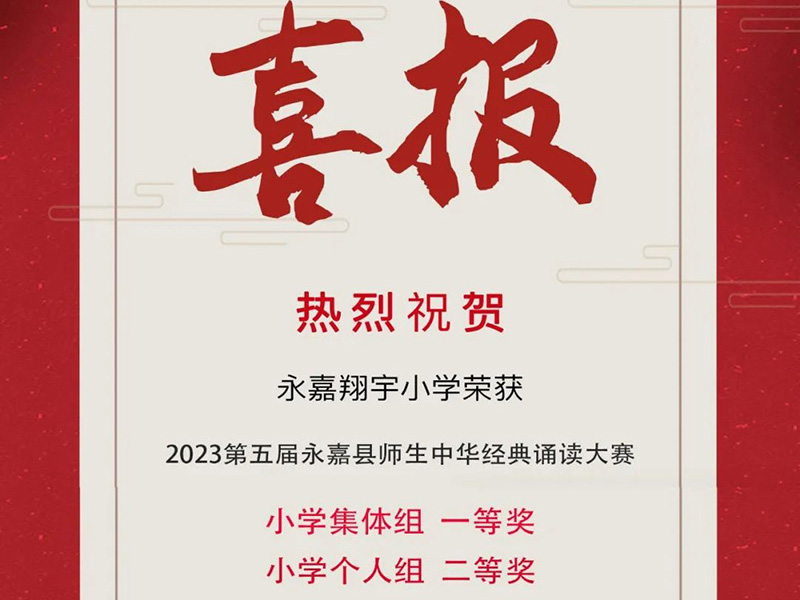 时间:2023-05-19 14:36:01 浏览:19612023年5月16日,永嘉翔宇小学在第五届永嘉县师生中华经典诵读大赛中喜获佳绩。诵读是最温暖的有声艺术,我们将继续阅经典书籍,承中华风韵。...