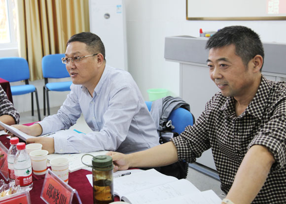 “昨天市教育局召开了‘课堂教学变革’的专题会议,想不到今天在这里就找到了理论支撑与课堂样板。”继高中部校长朱恒高汇报学校工作后,九门学科的市、县教研专家先后发言,他们认为:学校校园环境美,师生精神状态好,文化氛围气息浓,理想课堂模式新,学生合作效率高,师生幸福感强。结合视导过程中发现的不足,领导专家就课堂教学还要增加师生互动样式,导学习题还可以更精准等方面提出了多个有益建议。