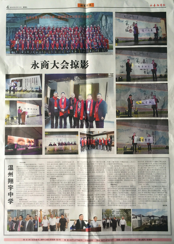 近日,《永嘉招商报》记者徐时良多次深入温州翔宇中学调查采访,于2016年4月15日,在该报第四版用1/3版面,刊文报道温州翔宇中学项目背景、投资方介绍、项目成果以及服务亮点。
