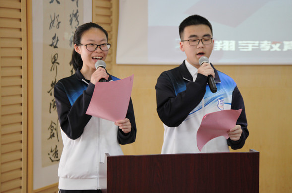 2019年5月6日下午,温州翔宇中学心语社第一次全体成员大会暨第二届心理健康活动月启动仪式在弘景楼报告厅举行。学校常务副校长、高中部校长潘文新,高中部家委会顾问夏理忠先生,学校心理咨询中心主任栾鸾、专兼职教师及心语社全体成员出席活动。陈昱吟和刘金涛两位同学共同主持。