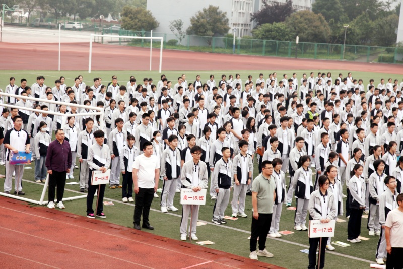 仪式伊始,庄严的升旗环节震撼上演。高二(12)班缪卓谕、戴妍妍、潘一凡三位同学作为护旗手,迈着铿锵有力的步伐走向升旗台。缪卓谕同学以“且随疾风前行,身后亦欲留心”为座右铭,彰显出勇往直前且心怀担当的精神;戴妍妍同学“何需浅碧深红色,自是花中第一流”的座右铭,尽显自信风采;潘一凡同学“光是纽带,会有人将它继承并再度发光”的话语,传递出传承与希望的信念。在激昂的国歌声中,五星红旗冉冉升起,全体师生庄严肃立,向国旗行注目礼。