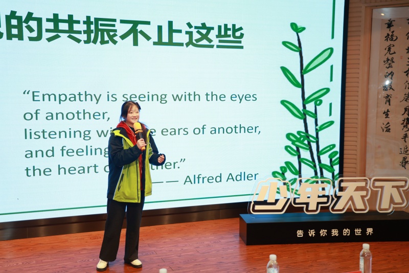 瓯江书院院长叶玉林老师结合自身经历进行分享。他表示,希望学生能够自由、自信地表达自我。他指出,翔宇是一所包容、多元的学校,在这样的环境中,学生的声音能够被尊重,思想得以生长。