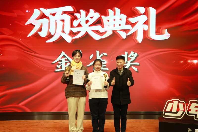 随后,大赛现场举行颁奖仪式。本届演讲会共评选出金雀奖2名、银雀奖5名、铜雀奖6名。获奖选手依次登台领奖,在热烈的掌声中收获属于自己的荣誉,也为本届“少年天下”演讲会画上圆满句号。