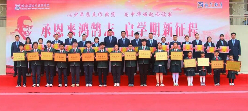 翔宇教育集团常务副总校长高立顺以“龙马精神”“路遥知马力”“人人皆黑马”三个关键词解锁成长密码,勉励学子“以少年恩来作典范,为中华崛起而读书”。