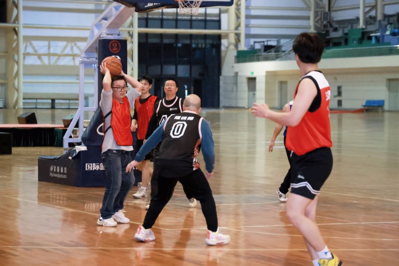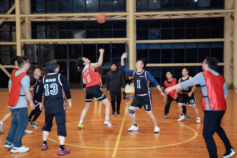 随着工会主席栾鸾老师将篮球高高抛起,高中队与小学队的激烈角逐正式拉开帷幕。赛场上,双方队员迅速进入状态,攻防转换快速,传球、突破、投篮,每一个动作都展现出教职工们精湛的球技和昂扬的斗志。场边观众的呐喊声、助威声此起彼伏,将现场气氛一次次推向高潮。