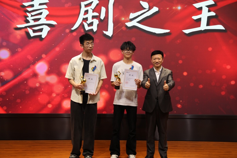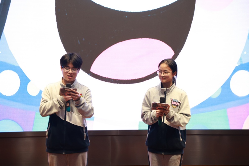 担任本次大赛专业评委的,有赵婷婷老师、黄蕊老师,以及上一届脱口秀大赛的优秀选手——来自高三的学长王嘉禾、陈昱、陈梓轩。来自15个参赛班级的大众评委团也手持“小巴掌”,用一次次举牌为喜爱的选手加油助威。