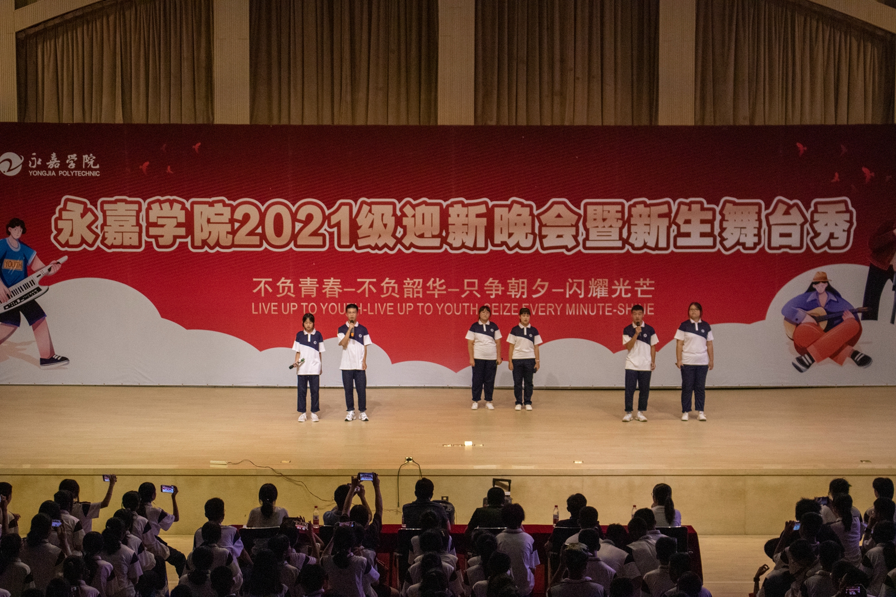 青春学子展风采,二职新生绘芳华。为了给新生提供展示自我的舞台,彰显青春活力与个性,9月9日晚18点40分,永嘉学院在校体育馆举办2021级新生迎新晚会暨新生舞台秀。永嘉学院吕正军院长、党委祁欧旭书记、学生处吕方毅处长、胡文其副处长、章妮副处长、团委负责人赵亚微、高一各班班主任老师、高一全体新生参加本次活动。