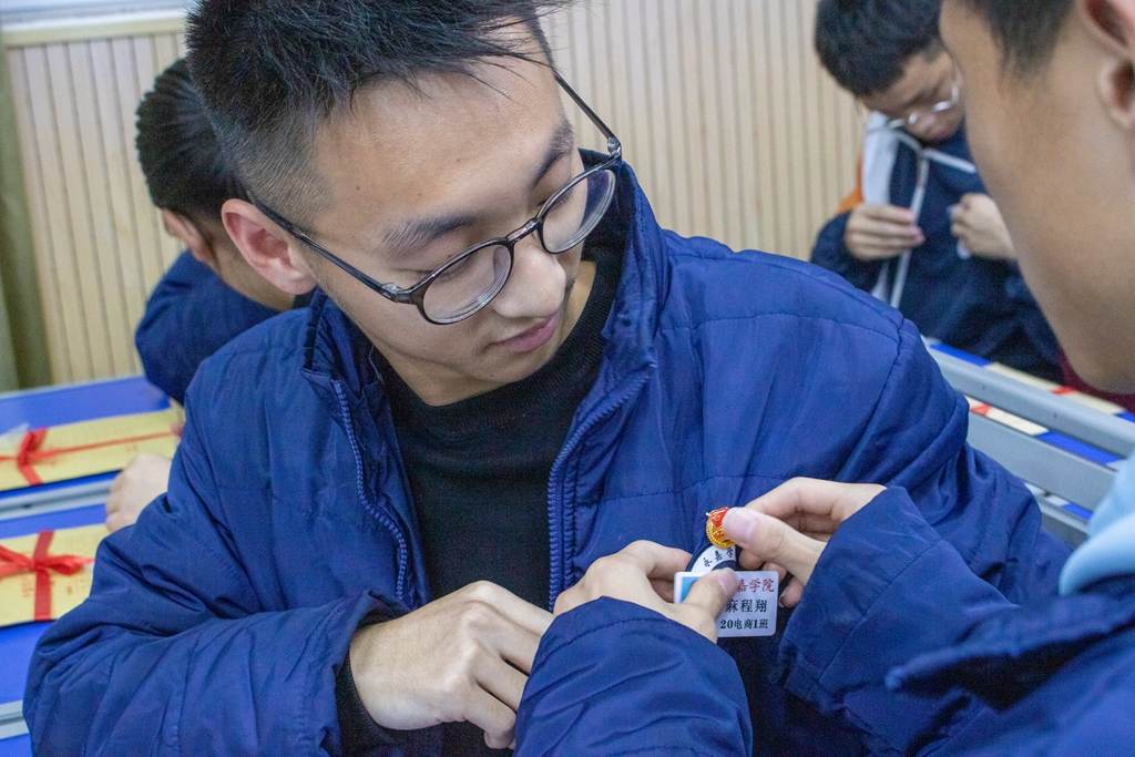与会老师向新团员颁发精心准备的“团员大礼包”:团章、团员证、入团志愿书和团徽,新团员们互相佩戴团徽。祁书记表示每个团员从佩戴上团徽的那一刻起,就要认清自己肩负的责任,努力履行团员的义务,用实际行动来诠释“我,是一名共青团员”的具体模样。