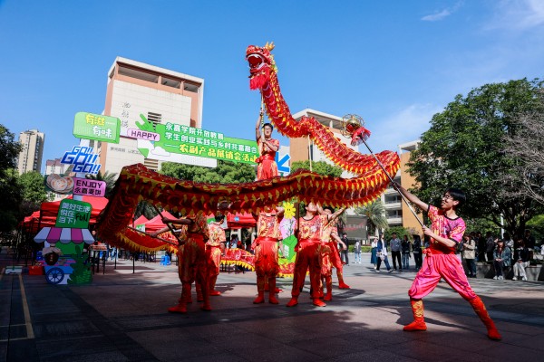 在校园广场上,农副产品展销会热闹非凡。活动开场,舞龙表演《龙腾嘉园》震撼登场。舞龙队员们身姿矫健,步伐灵动,手中的巨龙在激昂鼓点的配合下,时而盘旋,时而腾飞,活灵活现。现场观众的欢呼声此起彼伏,瞬间将气氛推向高潮。