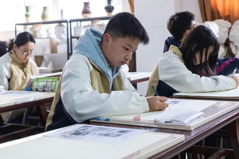 本次艺术节严格按照永嘉县 2026 年中小学生艺术节活动要求,结合学校实际精心策划,设置艺术作品类和艺术表演类两大类别共十余项比赛。艺术作品类赛场中,画室里,绘画、书法选手凝神静气,以笔墨寄情,国画的写意灵动、水彩的清新雅致、书法的笔走龙蛇,尽显中华传统艺术魅力;创空间教室内,篆刻选手执刀运石,方寸之间勾勒匠心,剪纸、手工艺制作、平面设计选手则巧思迸发,或剪刻出精美纹样,或用各类材料打造创意作品,围绕主题尽显巧思;悦空间一楼的摄影赛场,选手们手持专业相机,捕捉校园美好瞬间,用镜头定格青春与热爱。各项作品创作均严格遵循尺寸、材料等要求,现场命题的形式更考验着学子们的临场创作能力。