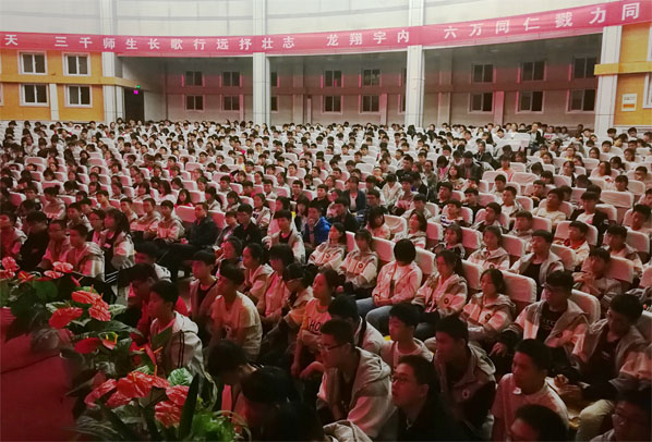 韩主任对学生做了题为《几年的放纵,换来的是一生的卑微》的励志报告。韩主任以生动形象的具体事例向学生们表达了殷切希望,鼓励学生不要在吃苦的年纪选择安逸,和有正能量的人群接触;每一人都要有坚定的信念和顽强的毅力,不问基础,不问时间,从现在开始,努力, 奋力拼搏,无悔青春。