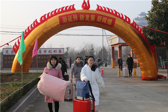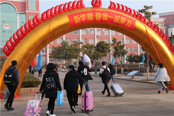 早上八点,根据学校安排,学校已经做好了迎接学生们“回家”的准备。同学们陆陆续续穿过朱红色的彩虹门,一张张洋溢着春意的笑脸又回到校园,开启了猪年的第一次相聚。