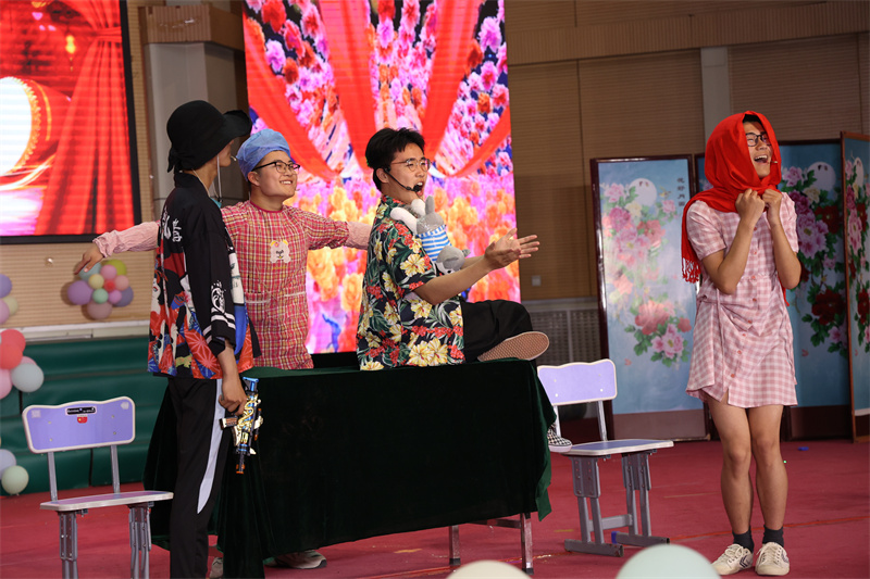 小品《一出不好戏》中“帮主”五人组的表演滑稽风趣,每一句台词、每一个动作、每一个表情都能令人忍俊不禁,逗笑全场。而其中关爱守巢老人的主题又给人以品味和思考。歌曲串烧、古筝《渔舟唱晚》更是青春才艺的展示,或低沉悠扬,感受生活之多彩;或铿锵激越,表达生命之坚强。最能嗨翻全场的就是师生T台走秀,各类青春服装,各种花样动作,各个创意造型无不彰显师生们的活力和自信。六亲不认的步伐、目中无人的眼神、出其不意的转身引得大家一片叫好。