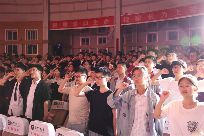 2022届高三已圆满走完了高中历程,十八中又将迎来新的使命,新一届高三即将登上舞台。在激昂的旋律中,执行校长给准高三年级郑重授旗,并下达军令:砥砺奋进,使命必达,攻坚克难,再创辉煌!十年磨一剑,风华看今朝。活动最后,王振、芮光亮两位同学带领全体同学昂扬宣誓。“我们必定成功!”“我们志在必得!”“翔宇加油!”“高考必胜!”热烈震耳的誓言此起彼伏,响遏行云,充满豪情,振奋人心。