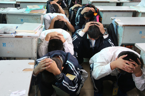 为了保证本次防空防灾紧急疏散演练的安全、高效、有序进行,尤其是初一新生的疏散安全,学校领导对本次演练进行了周密部署,要求各班主任在第一时间到班,安排当堂课任教师下课后立即到对应的楼层、楼道处值守,负责指挥引导学生按规定路线上下楼梯。陆怀珍副校长特别强调,初一新生刚进校园,对淮外的安全通道、紧急疏散路线尚不熟悉,各班主任一定要加强指导,解说清楚,确保安全。初一年级演练前召开了专题会议,使老师、学生熟悉演练正确方法,讲明演练的程序、内容、时间和纪律要求。各班主任老师还利用晨会时间对疏散的相关细节进行了再强调,并带领全体同学按预定的疏散路线走了一遍,同时,对可能发生的问题,采取预防性安全措施,消除隐患,确保演练顺利、有序、安全的完成。