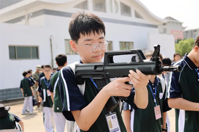 国无防不立,民无防不安。为深植家国情怀,锤炼意志品格,让学生真切理解责任与担当的意义,9月2日,淮安外国语学校初一级部“未来领袖特训营”的同学们在校长赵树青、副校长耿康、级部主任赵国武带领下走进驻淮某部,在枪炮与迷彩的世界里,沉浸式体验了一堂直击心灵的国防教育课。