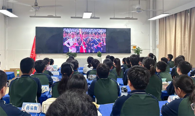 阅兵仪式开始前,各年级各班组织召开主题班会活动,引导学生将爱国热情转化为具体的学习动力和报国志向。