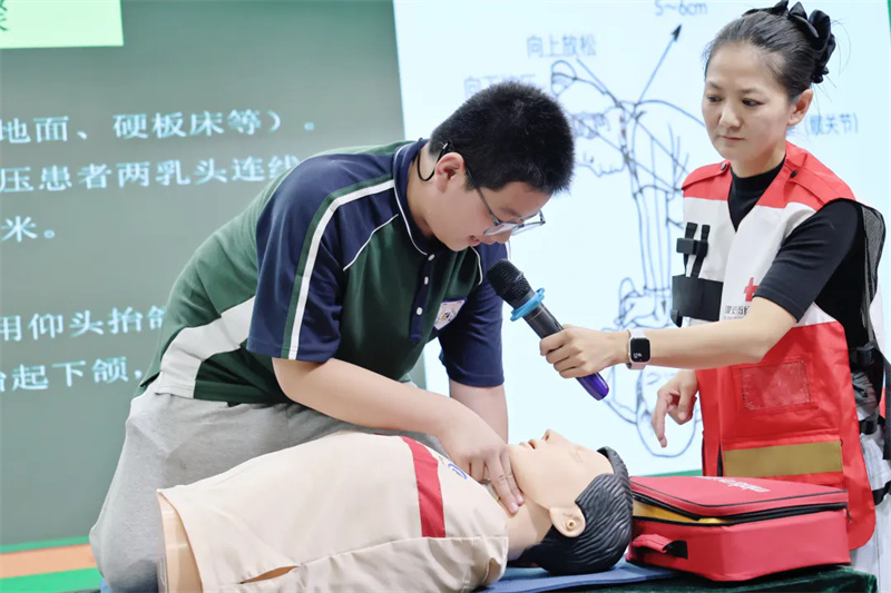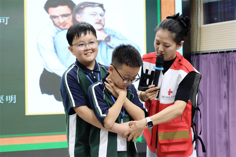 为增强学生应急自救与互救能力,筑牢校园安全防线,淮安外国语学校初一级部在2025年未来领袖特训营期间组织开展了应急救护培训。