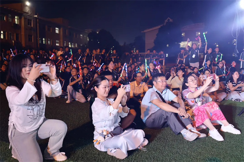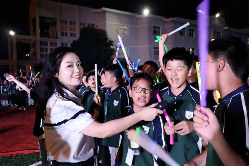 台下,荧光棒汇成璀璨星河,掌声、欢呼声此起彼伏。猜歌互动环节,同学们争先恐后,展现“中华小曲库”实力;每个节目结束,都有自发组成的“啦啦队”呐喊助威。这一刻,每个人都是晚会最闪亮的明星!