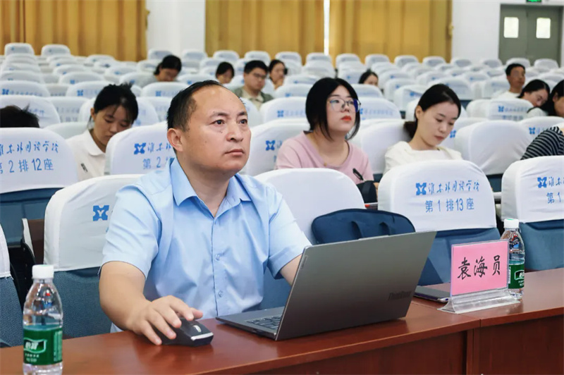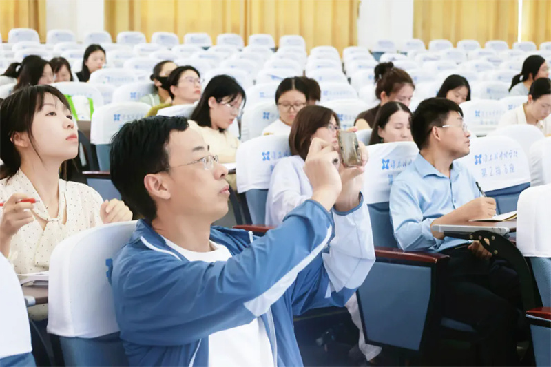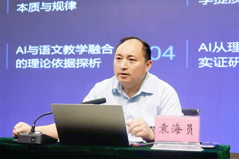 袁老师以《语文智趣学:AI赋能中小学语文教学实践研究》为题,进行了专题讲座。袁校长从“语文教学的本质与核心素养”、“AI对语文教学提质增效的意义”、“ AI与语文教学相结合的理论依据”、“AI赋能语文教学的案例”、“AI在语文教学应用中面临的挑战与对策”、“AI赋能语文教学的意义与实践方向”等维度进行了详细阐述。袁老师的讲座,深入浅出,旁征博引,引发与会老师的共鸣和阵阵掌声。
