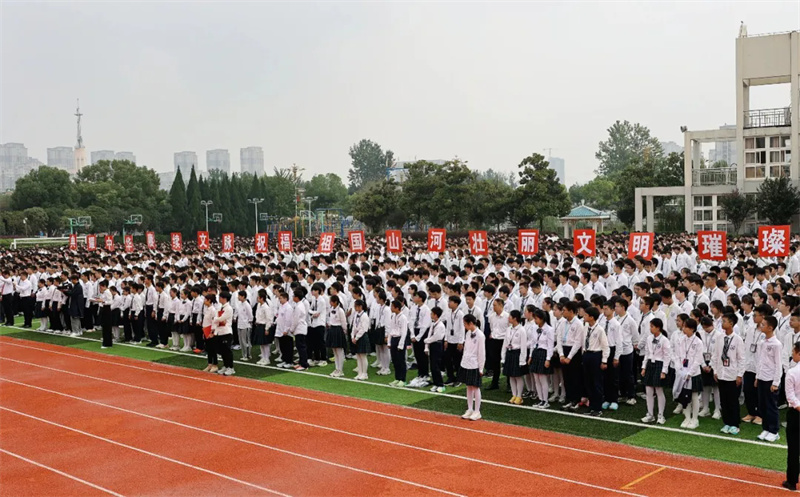 9月30日上午,全体师生齐聚运动场,开展“迎国庆 颂祖国”主题升旗仪式活动。这是一次与祖国的对话,是一段独具淮外记忆的告白。