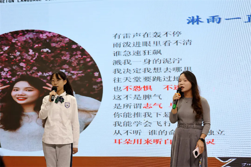 活动伊始,初一年级胡雅婷老师与她的学生合唱了歌曲,激昂的旋律传递出教育工作者与学生携手共进、勇敢逐梦的信念,为活动拉开了充满活力的序幕。