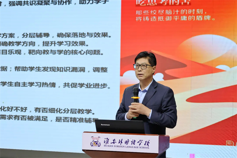 活动最后,赵树青校长以《让教与学成为师生彼此成就的美好相遇》为题作总结发言。他立足学校教育教学全局,从教学质量提升、学生身心健康呵护、安全从教等维度,为全体教师指明了教育教学的前行方向。