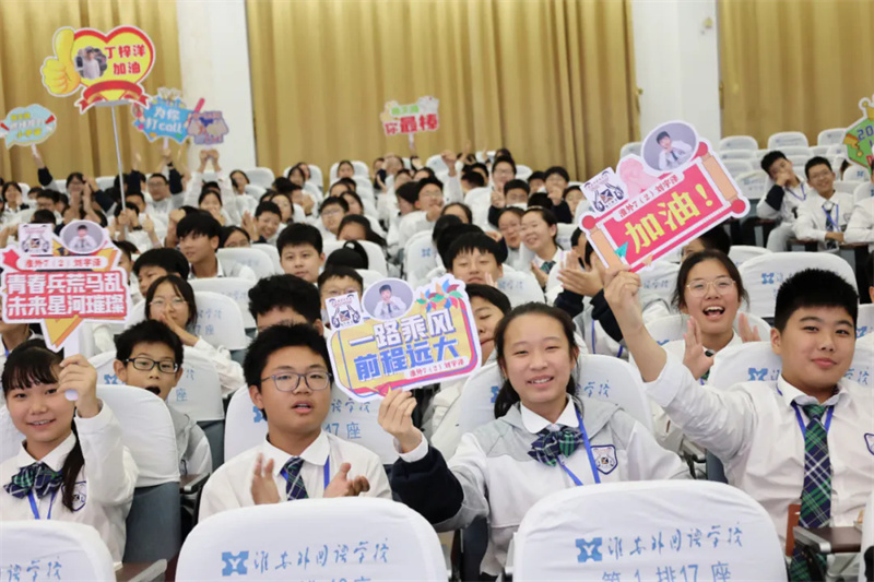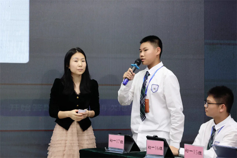 当晚的比赛现场气氛热烈,秩序井然。为增强班级凝聚力,各班级精心选派优秀合作小组成了观赛方阵,同学们手持印有本班参赛选手照片和加油口号的宣传牌,成为了赛场一道亮丽的风景线。各年级部还安排了专人负责现场纪律督查,确保了整场活动在热烈而有序的氛围中进行。