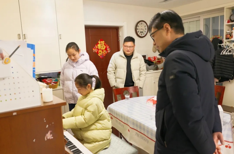 在初二(1)班陈子伊同学的家中,陈子伊同学的妹妹用音乐作为欢迎礼,一曲悠扬的钢琴曲驱散了陌生感,让整个屋子充满了温馨与活力。在交流中,家长坦诚地倾诉了困惑:孩子进入青春期后,在家变得沉默寡言,不愿多开口。面对这一常见的家庭教育难题,赵树青校长温和地给出建议:“家长需要转变角色,放下‘长辈’的身段,学着做孩子的朋友。多倾听,少说教,才能真正走进他们的内心。”随后,他又鼓励学生:“平时在家多参与家务劳动,在点滴实践中学会担当,让自己在成长中全面发展。”