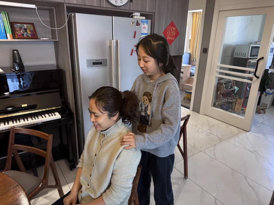 周日上午,这些感恩券被孩子们亲手送到妈妈、奶奶手中。随之而来的,是一张张幸福合影——有人紧紧抱着妈妈,有人搂着奶奶的肩膀,笑得露出八颗牙齿。镜头里,春光正好,岁月温柔。