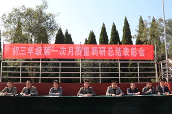 时间:2014-10-14 19:08:35 浏览:538勤奋铸就成功,管理打造精彩。2014年10月14日下午,淮安外国语学校初三年级在校运动场隆重召开第一次质量调研总结表彰大会。分管初三级部工作的陆怀珍副校长、初三年级部张知双主任、王步艮副主任等领导出席了会议。 会议在和谐、悠扬、祝福的旋律中开幕。张...