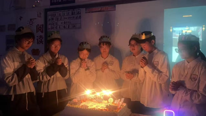 活动最后,全班师生合影留念,记录下这美好的一夜。许多住校生的家长还提前录制了祝福视频,在现场播放,令孩子们惊喜不已。各科任课教师也受邀参与,与同学们共度温馨时光。