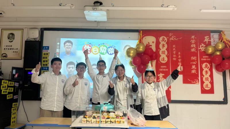 活动在温馨的音乐中拉开帷幕。各班主持人以热情洋溢的开场白引出主题,大屏幕上陆续播放寿星们的童年照片,同学们踊跃竞猜,笑声不断。随后,寿星们一齐上台,全班共唱生日歌,学生代表送上真诚的祝福。烛光中,寿星们共同许愿、吹灭蜡烛、切分蛋糕,与全班师生共享甜蜜时刻。