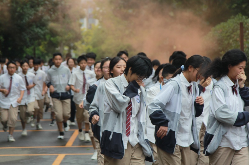 随着急促的警报声在校园上空响起,演练正式拉开帷幕。全体教师迅速到达指定岗位,沉着冷静地指挥学生疏散。同学们在老师的引导下,反应迅速,行动快捷,按照预定的疏散路线,弯腰低身、用捂住口鼻,快速而有序地从各教学楼向学校操场的安全地带撤离。整个疏散过程紧张而不慌乱,快速而有序,短短几分钟内,全校师生全部安全疏散完毕,做到了高效、有序、零意外。