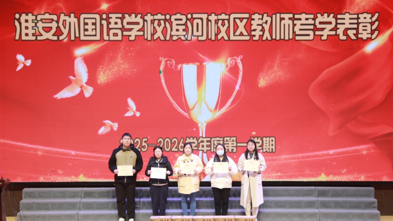 教学教研处董云主任宣读《2025-2026学年度第一学期教师考学(一)优秀教师、优秀备课组表彰决定》,勉励全体教师常态化开展试题研究、为学生的轻负高效筑牢根基。