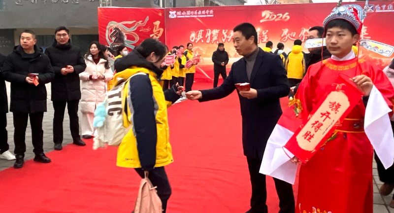 晨光里,田学银校长、英昌磊常务副校长、范洪雷校长助理等领导和老师早早守候在校门口,将一枚枚刻有奔马图案与励志寄语的专属书签和新学期的美好祝福亲切赠予每位学子。一张张笑脸在春风中绽放,一声声“老师好”在校园里回荡,久别重逢的喜悦与对新学期的憧憬交织成一首欢快的青春序曲。