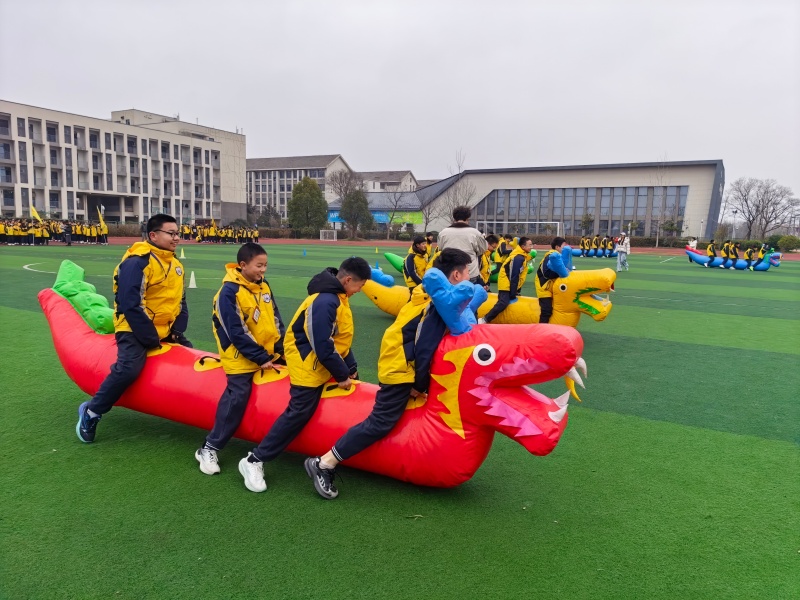 三月的风还带着些许凉意,但3月4日下午的校园操场上,却涌动着阵阵暖流。几条色彩明快的充气龙舟整齐排列,等待着它们的“船员”。这是滨河淮外秉持“健康第一,快乐校园”的理念,为帮助同学们更好回归校园生活而特别举办的旱地龙舟体验活动。没有竞技的紧张,没有成绩的压力,只有一声声口号、一张张笑脸,和那份专属于校园的温暖归属感。
