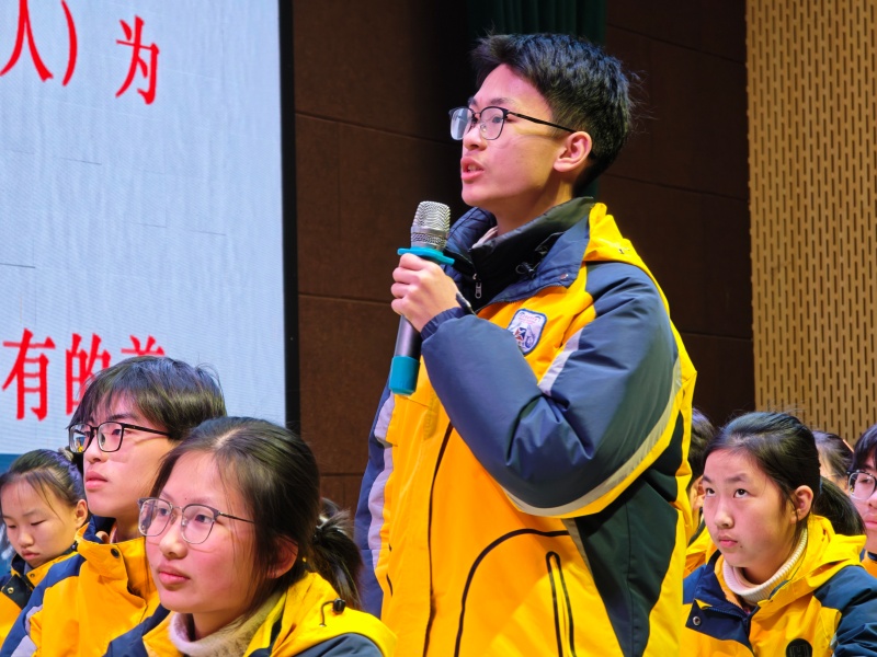 随后,淮安工业园区实验学校胡浩老师执教《议论类文言文复习与解题策略》观摩课。胡浩老师引导学生突破机械翻译模式,把握文本逻辑内核。通过精选篇目、设置问题链,帮助学生厘清古代议论文思辨路径。课堂上,学生们的思维能力得到了有效提升。两节观摩课一文一理、一赏一析,风格迥异又相得益彰,为与会教师提供了多角度、多层次的复习教学启发。