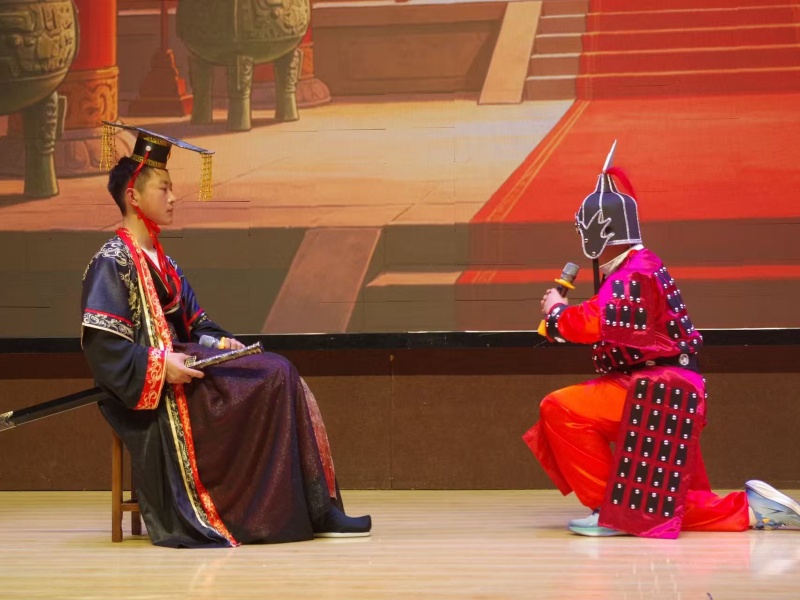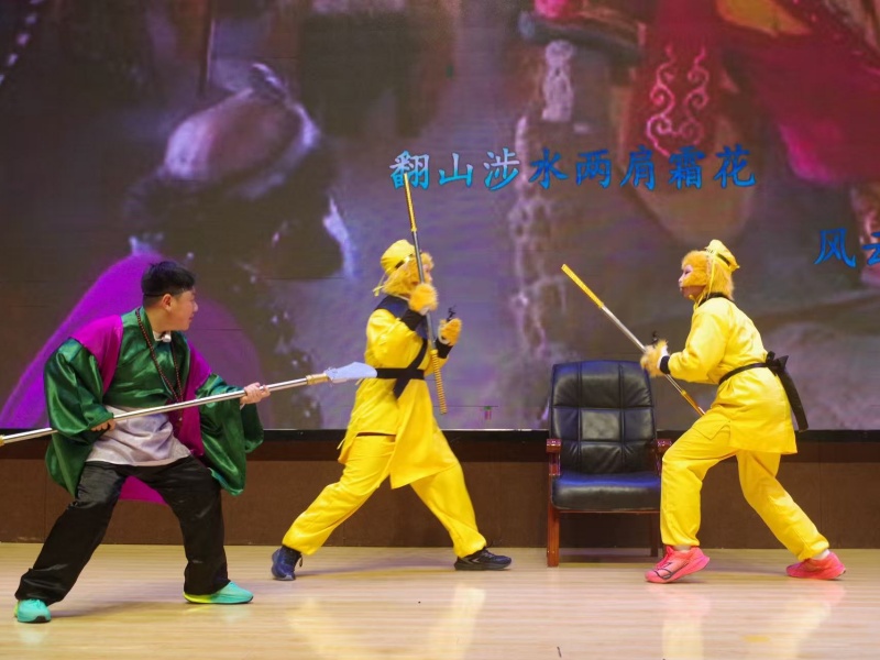初一6班带来的《三打白骨精》、初一11班演绎的《真假美猴王》、初一13班呈现的《西游记》,以跌宕的剧情、鲜明的角色塑造,让经典名著中的神魔故事跃然眼前,引得台下掌声阵阵。