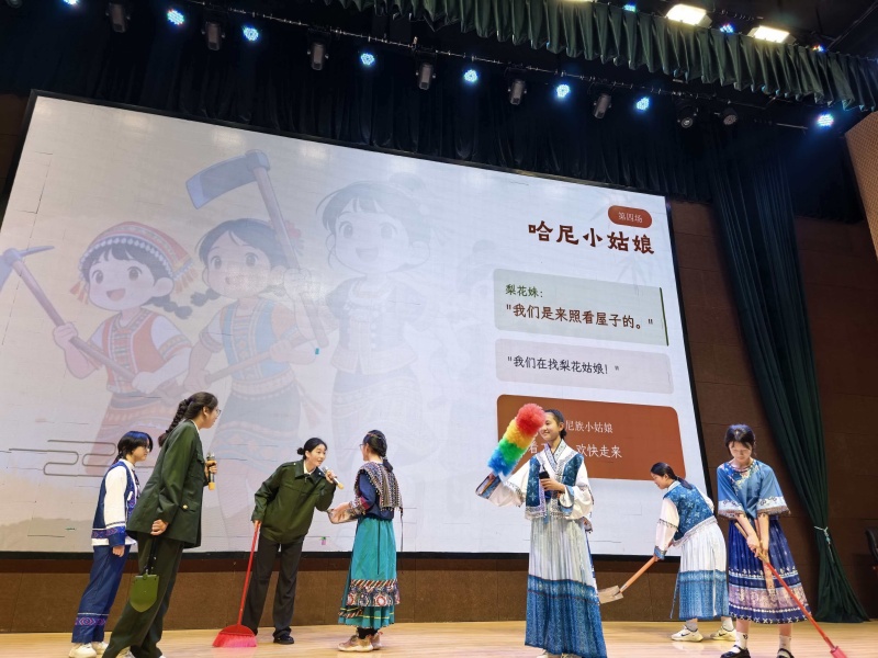 初一16班的《驿路梨花》以质朴的表演诠释了助人为乐的精神内核,温暖动人。