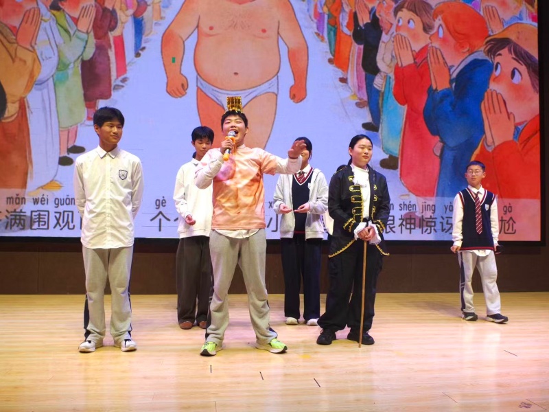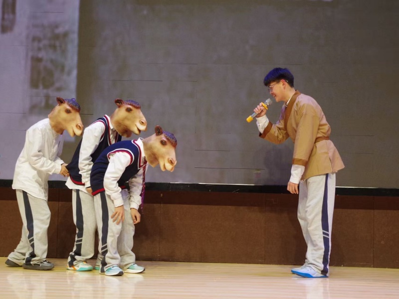 初一8班的《骆驼祥子》、初一9班的《皇帝的新装》,则以细腻的情感刻画、幽默诙谐的语言、生动的肢体表演,展现了底层人物的命运悲欢、戏谑人生与童话背后的讽刺深意。