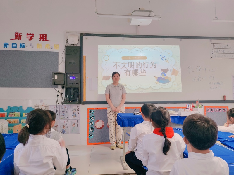 班会伊始,班主任以“不文明的行为有哪些”为切入点,结合校园生活实例,列举了乱插队、乱扔垃圾、说脏话、践踏绿化、打扰他人休息等常见行为,通过直观呈现,让学生清晰认识到不文明行为对校园环境与人际关系的负面影响,引发自我反思。