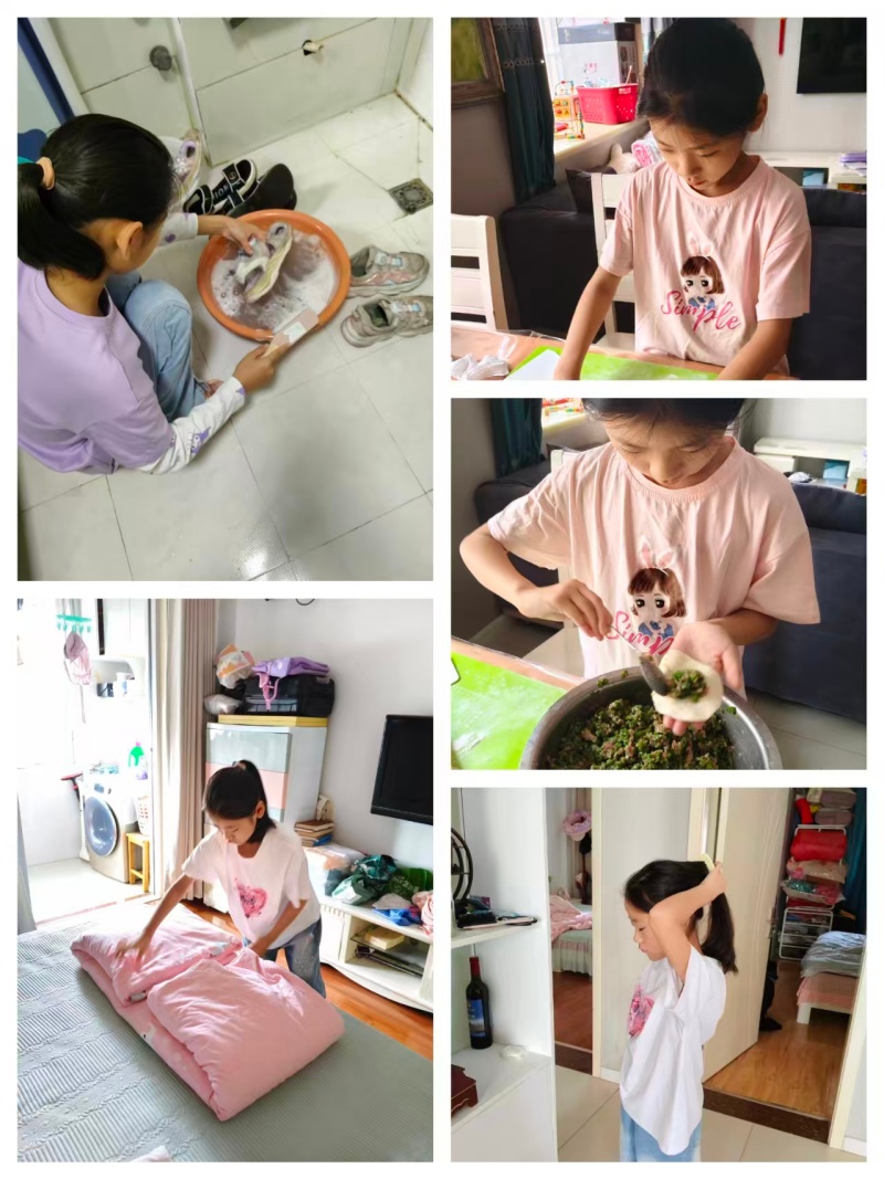 运动之外,劳动实践让滨河娃们化身“生活小能手”。厨房里,有孩子踮着脚尖学洗菜、择菜,认真的模样像极了小厨师;阳台上,他们搬着小板凳刷洗鞋子;田埂间,一个个小身影弯着腰体验农耕,泥土的芬芳沾满衣角;孩子们用小手做着力所能及的事,劳动的汗水里,藏着他们对生活的全新理解。