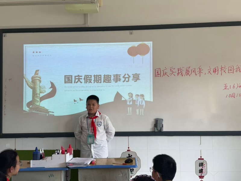 金秋送爽,丹桂飘香。国庆假期后,滨河淮外各班级召开“国庆假期生活分享”主题班会。同学们化身“小小分享家”,围绕假期趣事、家国感悟、文明行动三大板块,用生动的语言、真挚的情感讲述成长故事,让爱国情怀与文明新风在分享中传递。