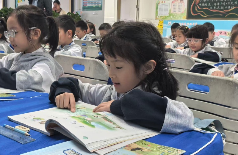 “叮铃铃——”预备铃响,萌娃们迅速归位,书本文具摆摆好;师生问好,鞠躬有礼;读书时,身正肩平,声音响亮;写字时,牢记“一尺一寸一拳头”,字迹工整。他们会举手发言,也会认真倾听,下课整理书桌,一切都是那么井然有序!