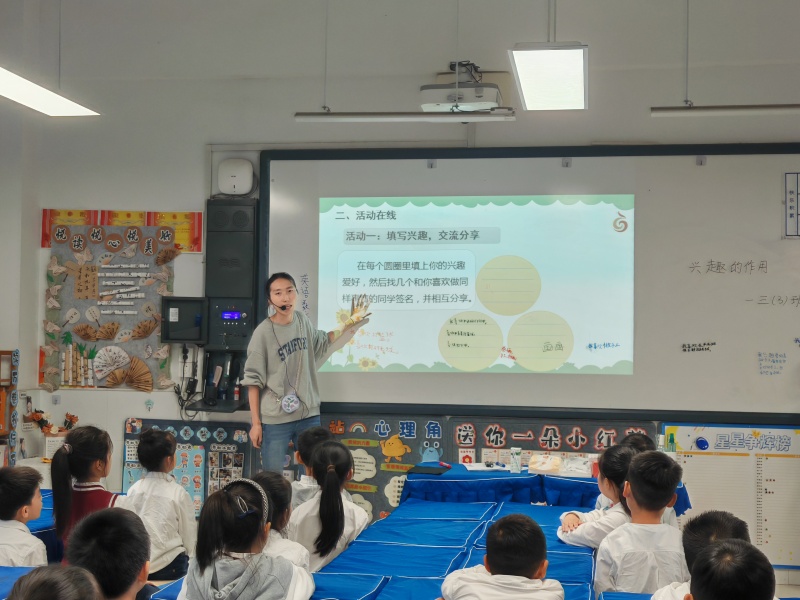 一年级课堂上,“找呀找朋友”的欢快歌声此起彼伏。孩子们通过互动游戏结识同伴,在欢笑中学会主动交往,搭建起最初的社交桥梁;二年级围绕“兴趣的作用”展开讨论,学生们分享绘画、阅读、运动等兴趣爱好,老师引导大家发现兴趣带来的专注与快乐,懂得用热爱丰富生活;三年级聚焦“不开心的时候怎么办”,通过情景模拟教会学生识别负面情绪,掌握倾诉、运动等简单有效的解压方法。