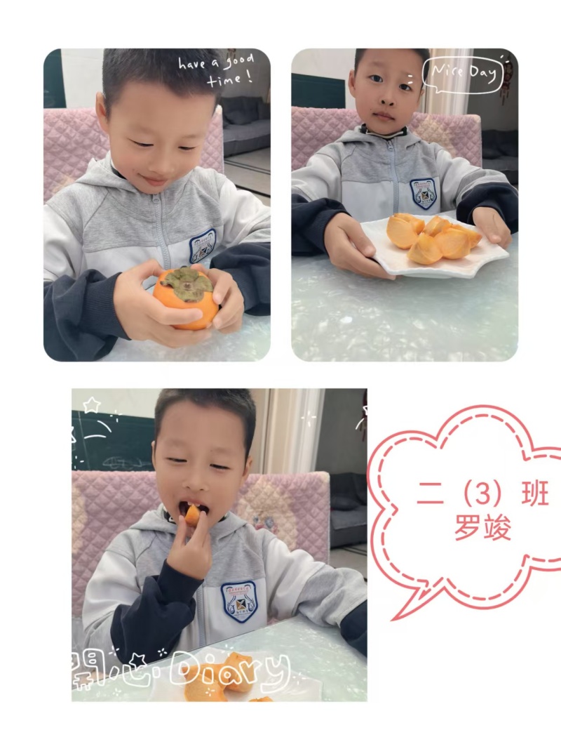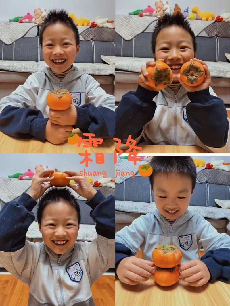 “品柿润燥”是霜降时节的经典习俗,活动中,同学们循着时令的指引,品尝起当季的柿子。脆柿咬下时清甜爽脆,汁水满溢唇齿;软柿入口则绵密香甜,如蜜般化开,这份时令的鲜甜成为秋日里难忘的味觉记忆。