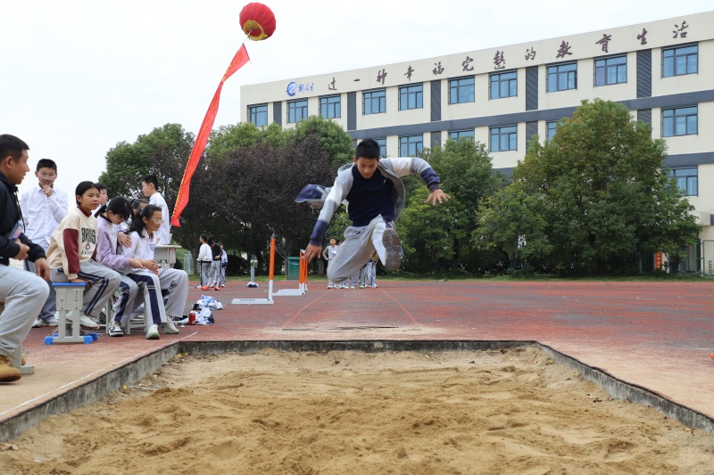 跳远沙坑旁,助跑、起跳、腾空、落地,一道道优美的弧线,是他们迈向更远目标的见证。