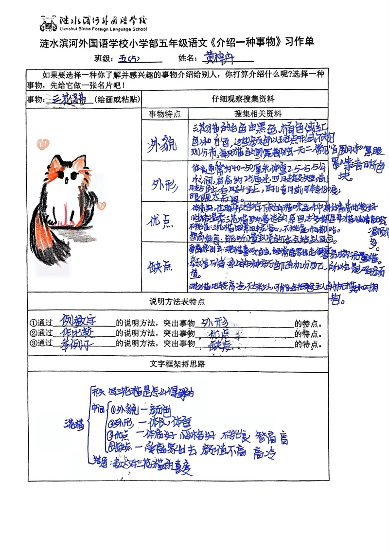 五年级上册语文第五单元以说明文为核心,课文用准确严谨的语言传递科学知识,以生动活泼的表达点燃同学们探索世界的好奇心。学完这一单元后,同学们化身 “小小科普员”,开展了一场趣味十足的特色作业实践,用文字为感兴趣的事物量身打造“专属名片”。